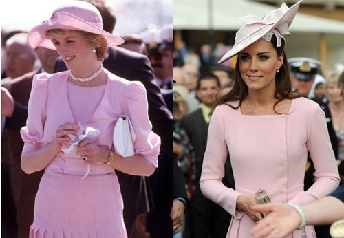Công nương Kate Middleton (phải) nhiều lần mặc giống công nương Diana. |
