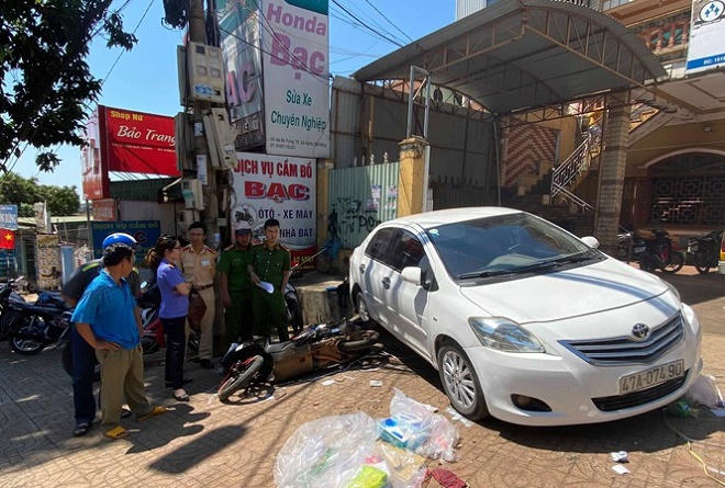 Tài xế sau đó đã đỗ bên đường Tôn Đức Thắng vào một cửa hàng bên đường. Bất ngờ chiếc ô tô trôi tự do hơn 20m rồi tông vào xe máy biển số 48H1-073.86 do chị Đ. Th. V. N (SN 1984, trú tại huyện Đắk Song) cầm lái.