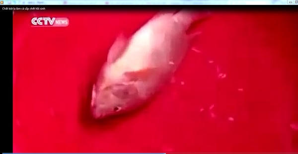 Một đoạn clip dài gần 1 phút từ đài Truyền hình CCTV News của Trung Quốc và đang lan truyền mạnh trên mạng xã hội. Hình ảnh trong clip ghi lại một con cá rô phi đang nằm ngửa dưới đáy chậu nước trong tình trạng như sắp chết.