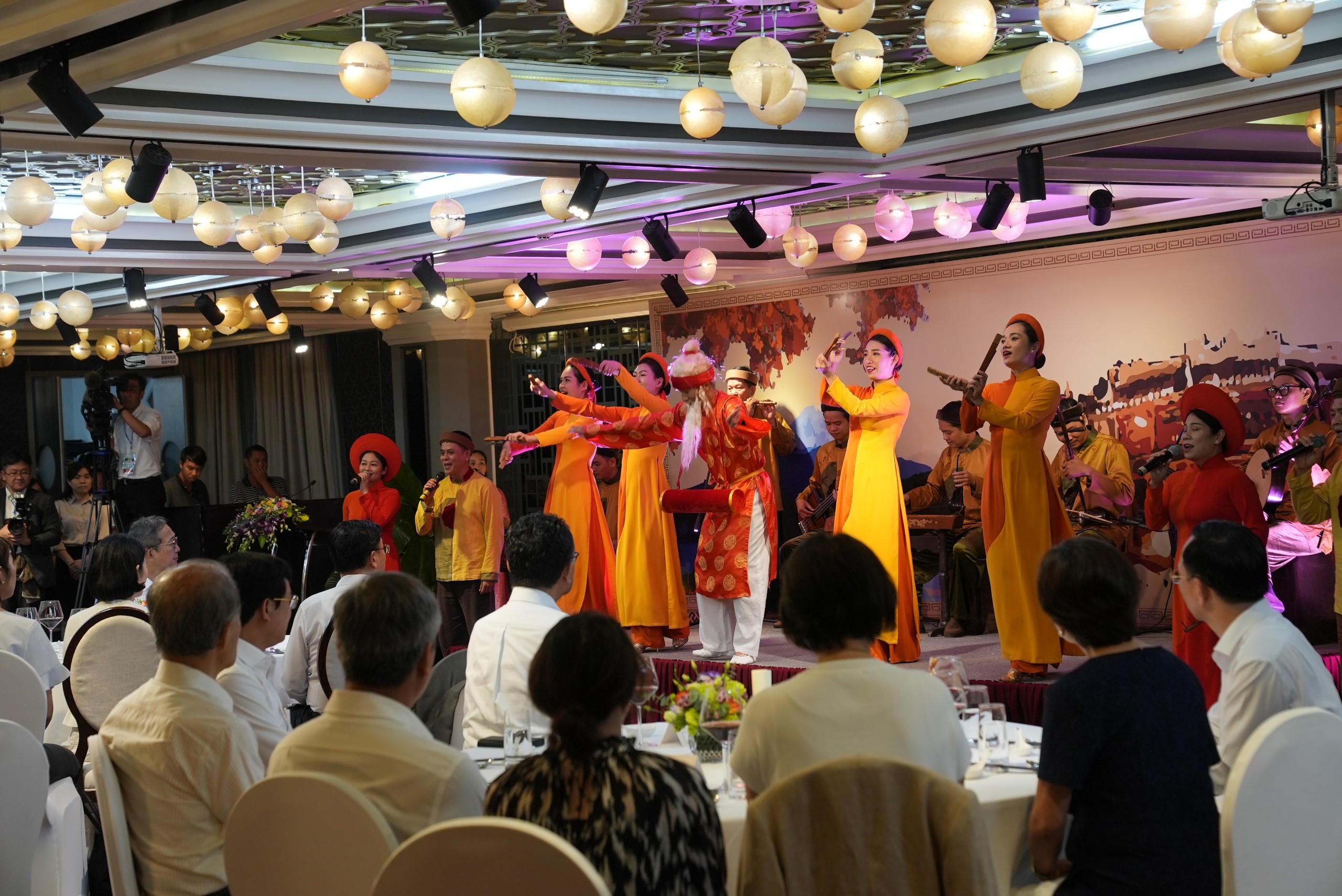 | Hoàng Thái tử Nhật Bản và Công nương thưởng thức chương trình nghệ thuật đậm chất dân gian ở phố cổ Hội An. |
