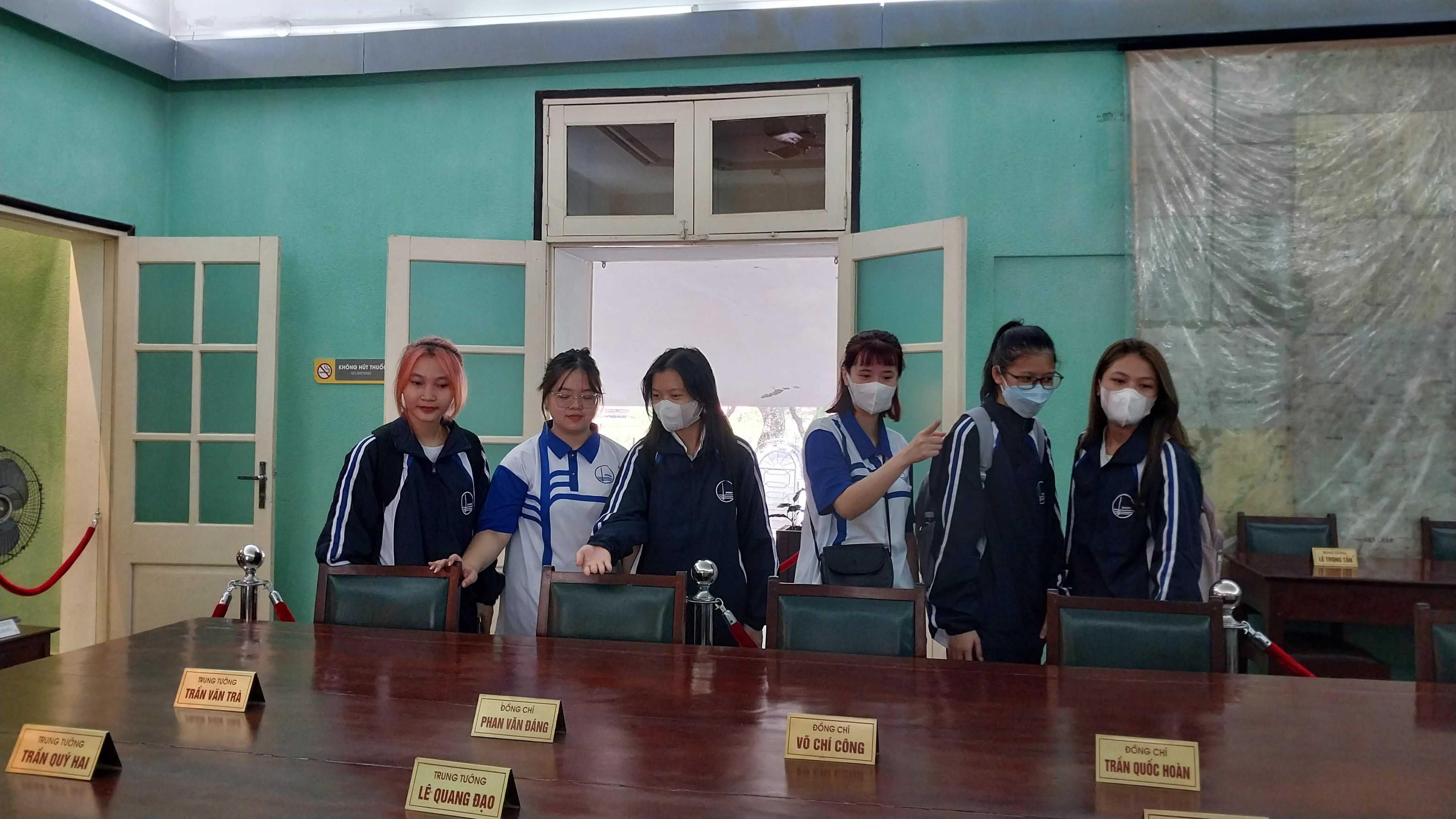 Các bạn sinh viên năm nhất ngành Việt Nam học, Trường Đại học Khoa học Xã Hội và Nhân Văn (Đại học Quốc Gia Hà Nội) tham quan di tích Nhà và hầm D67. |