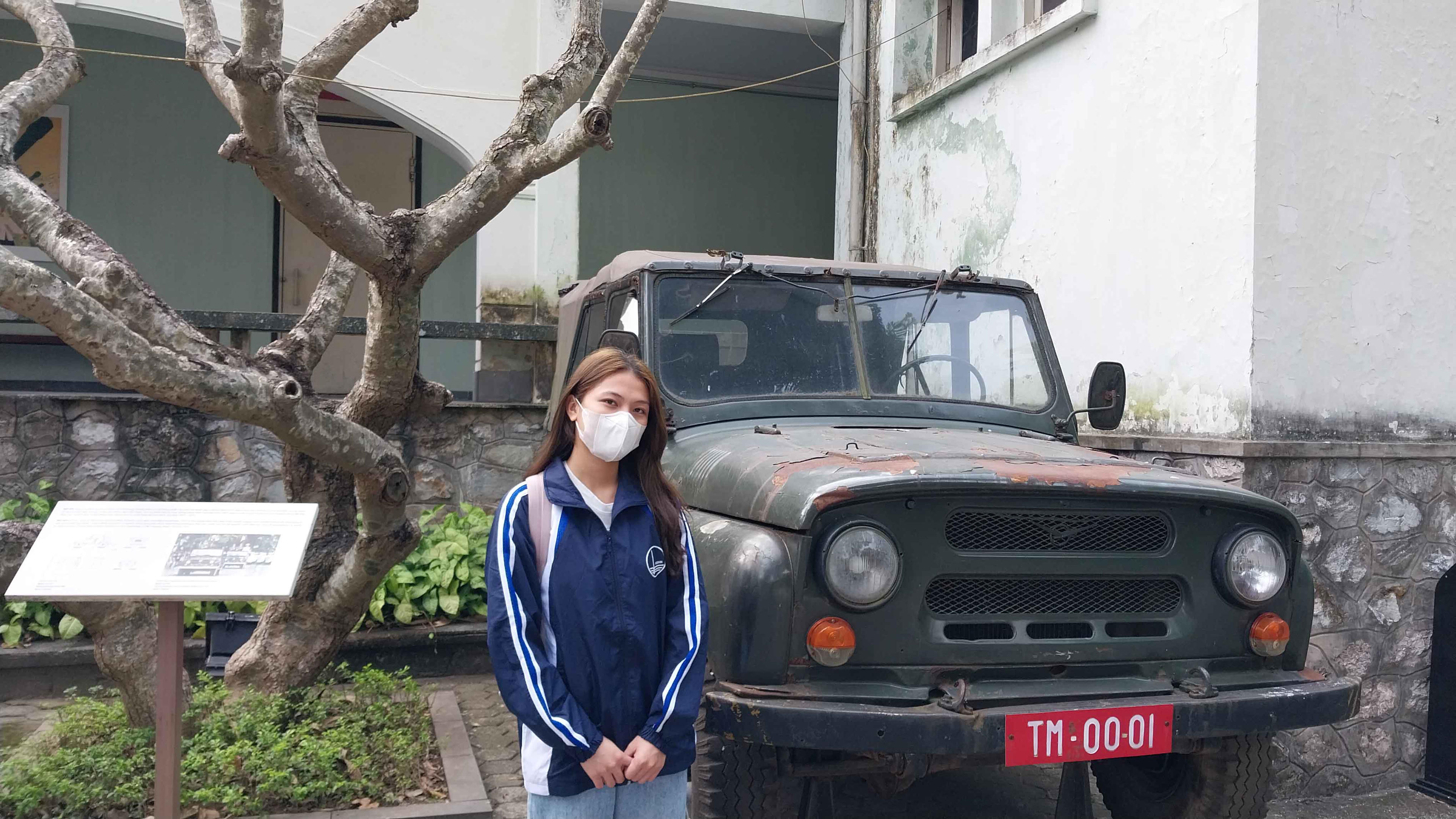 Trần Quỳnh Trâm, sinh viên năm nhất ngành Việt Nam học đứng cạnh di tích Nhà và hầm D67. |