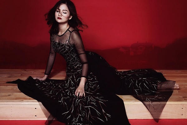 | Lan Phương trang điểm mắt nước, son môi lì đỏ thẫm tạo vẻ đẹp bí ẩn phù hợp tinh thần Halloween của bộ ảnh. |