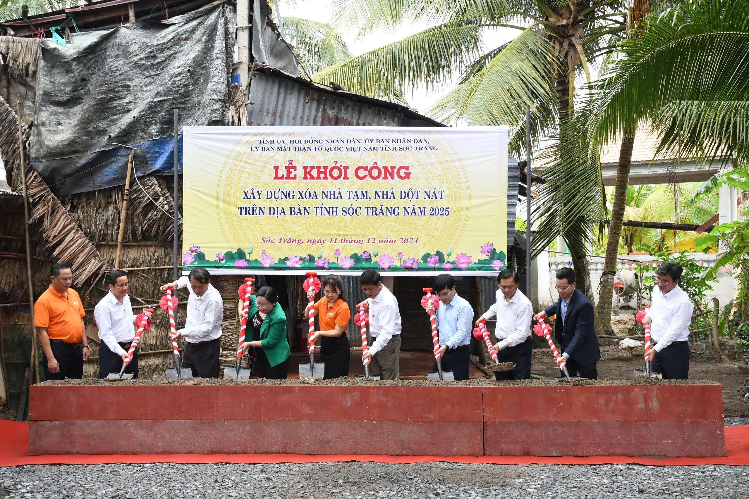Ông Trần Văn Tần (thứ 4 từ bên phải) – Thành viên HĐQT VietinBank tham dự lễ khởi công xây dựng xóa nhà tạm, nhà dột nát trên địa bàn tỉnh Sóc Trăng năm 2025 |