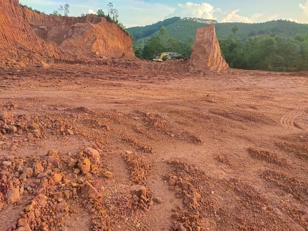 Quan sát hoạt động san gạt tại khu 7, thấy rất rõ, chỉ có hoạt động múc đất chở đi. Hiện nay, cả một diện tích rất lớn đất đồi, rừng sản xuất đã bị hủy hoại, đang tiếp tục bị đào sâu dựng đứng hàng chục mét, bề mặt san phẳng, nhẵn nhụi. Bao nhiêu đất được máy xúc đào lên, được đưa hết vào xe tải chở đi tiêu thụ; hoạt động cải tạo, san gạt không theo đúng phương án đảm bảo về mục đích cải tạo, cốt độ cao, biện pháp bảo vệ môi trường.