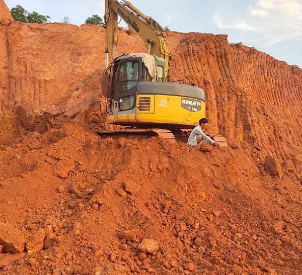 Ghi nhận của phóng viên tại khu 7 trong nhiều ngày cuối tháng 8/2020 cho thấy, hoạt động khai thác đất diễn ra rầm rộ, máy xúc miệt mài xẻ đồi, núi “ăn” đất, đổ lên hàng loạt xe tải nối đuôi nhau chở đi tiêu thụ. Hoạt động khai thác sôi động, nhưng không có biển mốc, cảnh báo và sự quản lý, kiểm tra, giám sát của bất cứ một đơn vị nào.