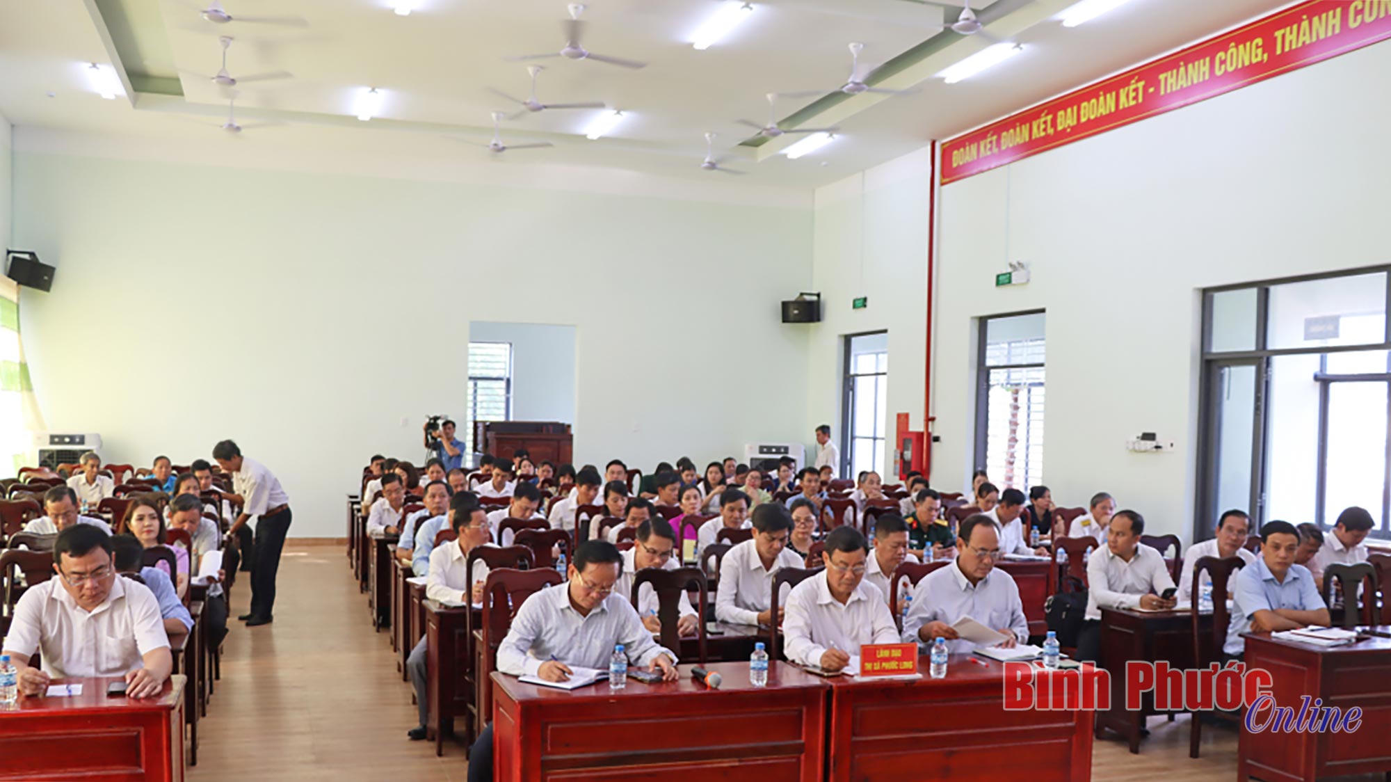 Lãnh đạo các sở, ngành, địa phương và cử tri dự buổi tiếp xúc cử tri của Đoàn đại biểu Quốc hội tỉnh Bình Phước. (Ảnh: BPO) |