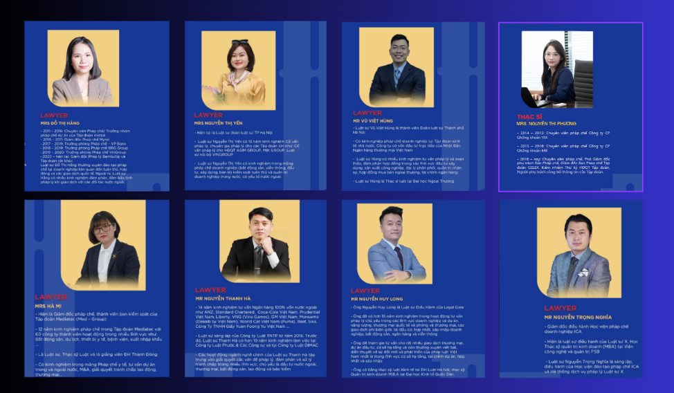 - Đội ngũ giảng viên đa dạng: Là giám đốc pháp chế, giám đốc các công ty luật lớn cung cấp góc nhìn thực tế trong nghiệp vụ pháp chế nội bộ và pháp chế thuê ngoài.