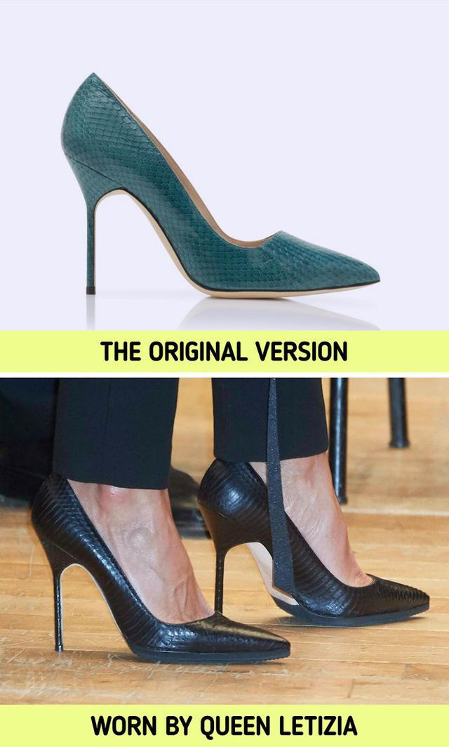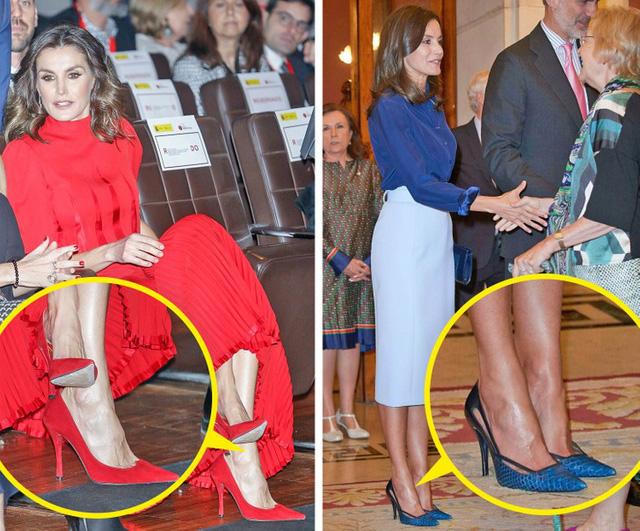 Để giúp đôi giày của mình thêm phần ổn định và tránh trơn trượt, Nữ hoàng Letizia thường sử dụng thêm miếng dán bên ngoài cho chúng.
