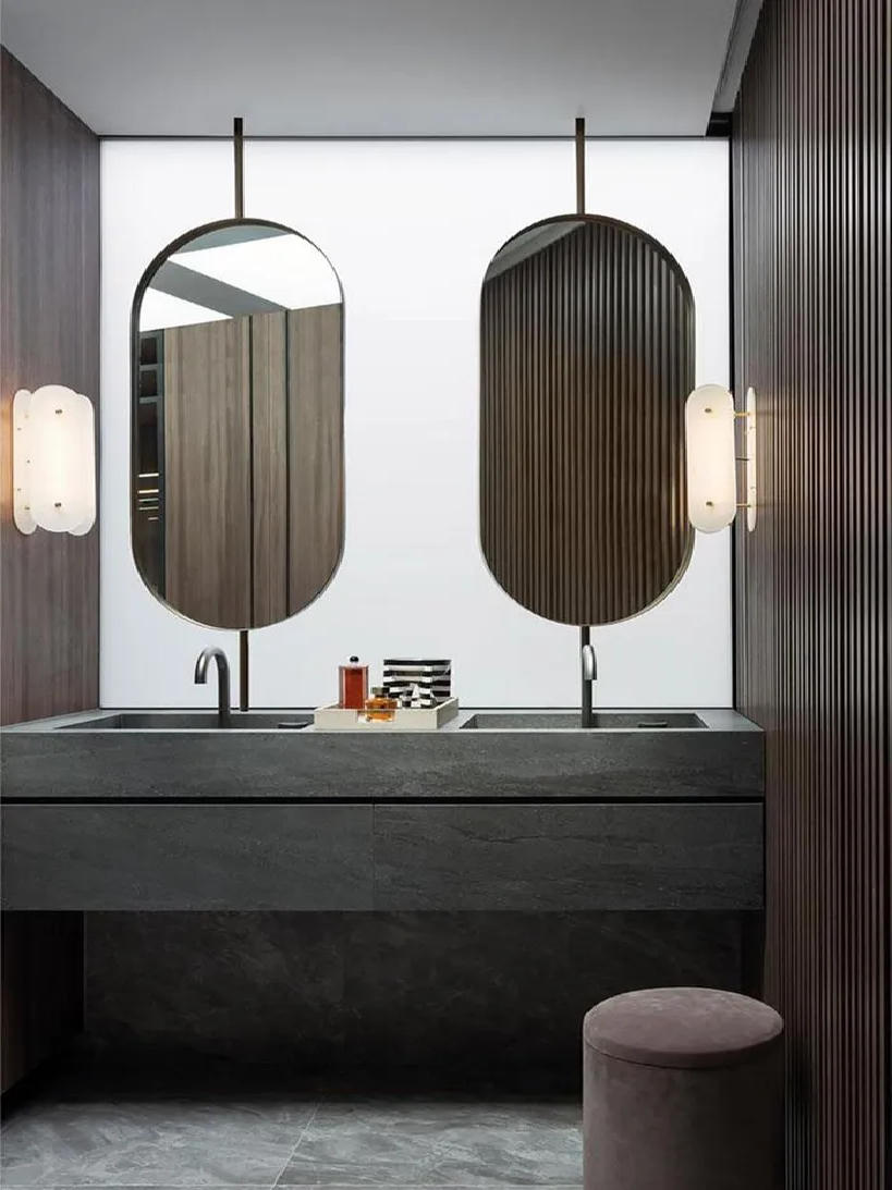 5. Nối đến việc thiết kế cho không gian nhỏ bạn không thể bỏ qua việc sử dụng gương treo tường. Đặt nhiều gương hơn trong phòng tắm cho phép nhiều người sử dụng cùng lúc. Đặc biệt, những hiệu ứng về không gian, phản xạ ánh sáng mà gương tạo ra sẽ đem đến một bầu không gian thoáng rộng trong cảm nhận của người dùng.
