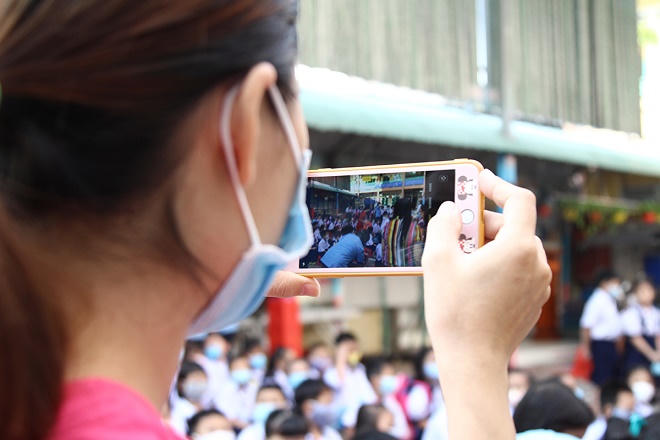 Ngày tựu trường của con được phụ huynh ghi lại. Ảnh Giáo dục & thời đại.