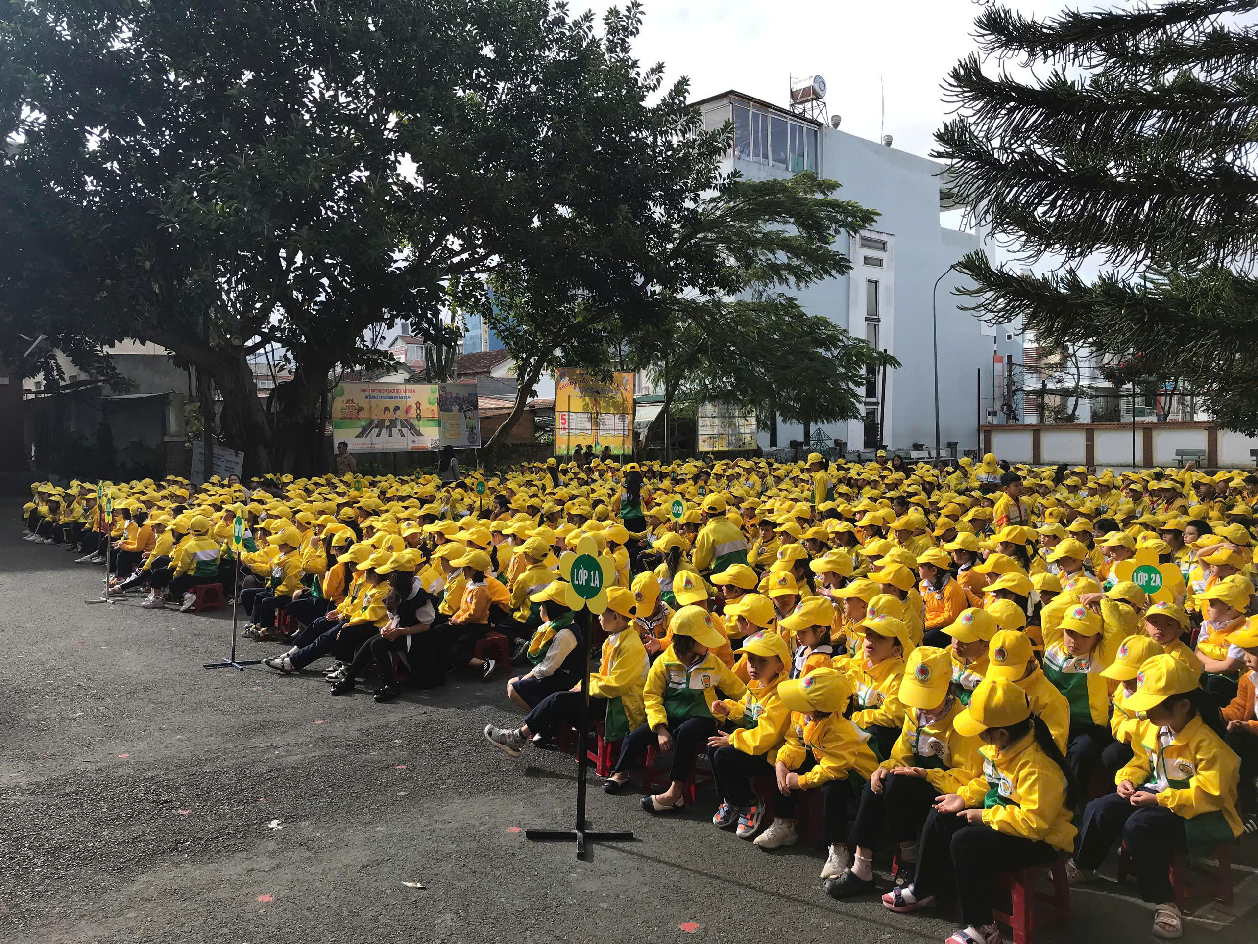 Học sinh trường Tiểu học Trưng Vương tại buổi tuyên truyền. |