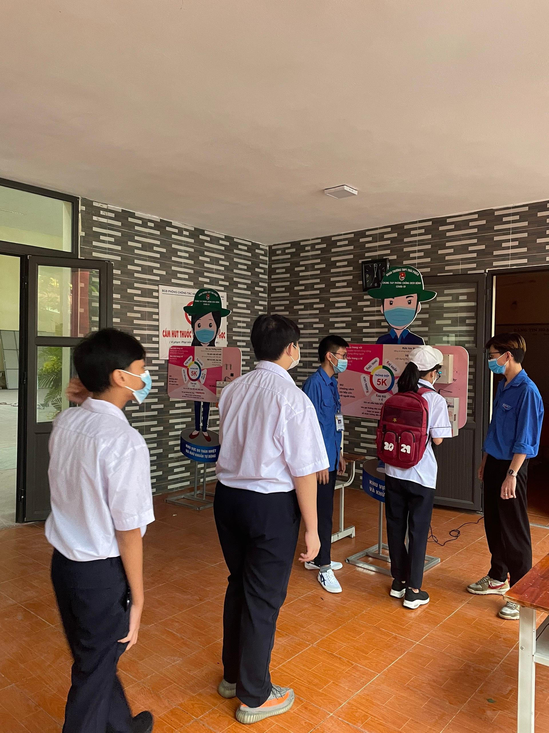 Trường THPT Thái Phiên kiểm tra thân nhiệt của học sinh trước lễ khai giảng |