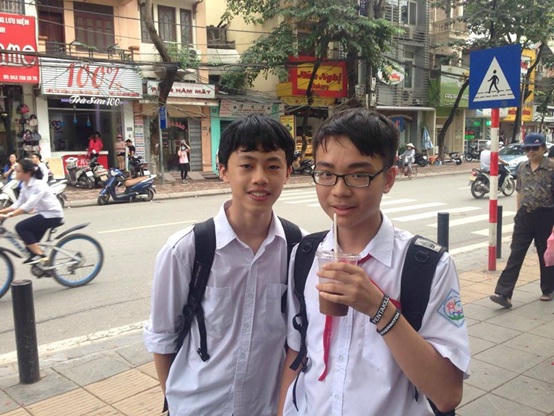 | Phạm Đức Thọ, Thọ học sinh trường THCS Nghĩa Tân (bên phải) chia sẻ với phóng viên Báo Pháp Luật Việt Nam. |