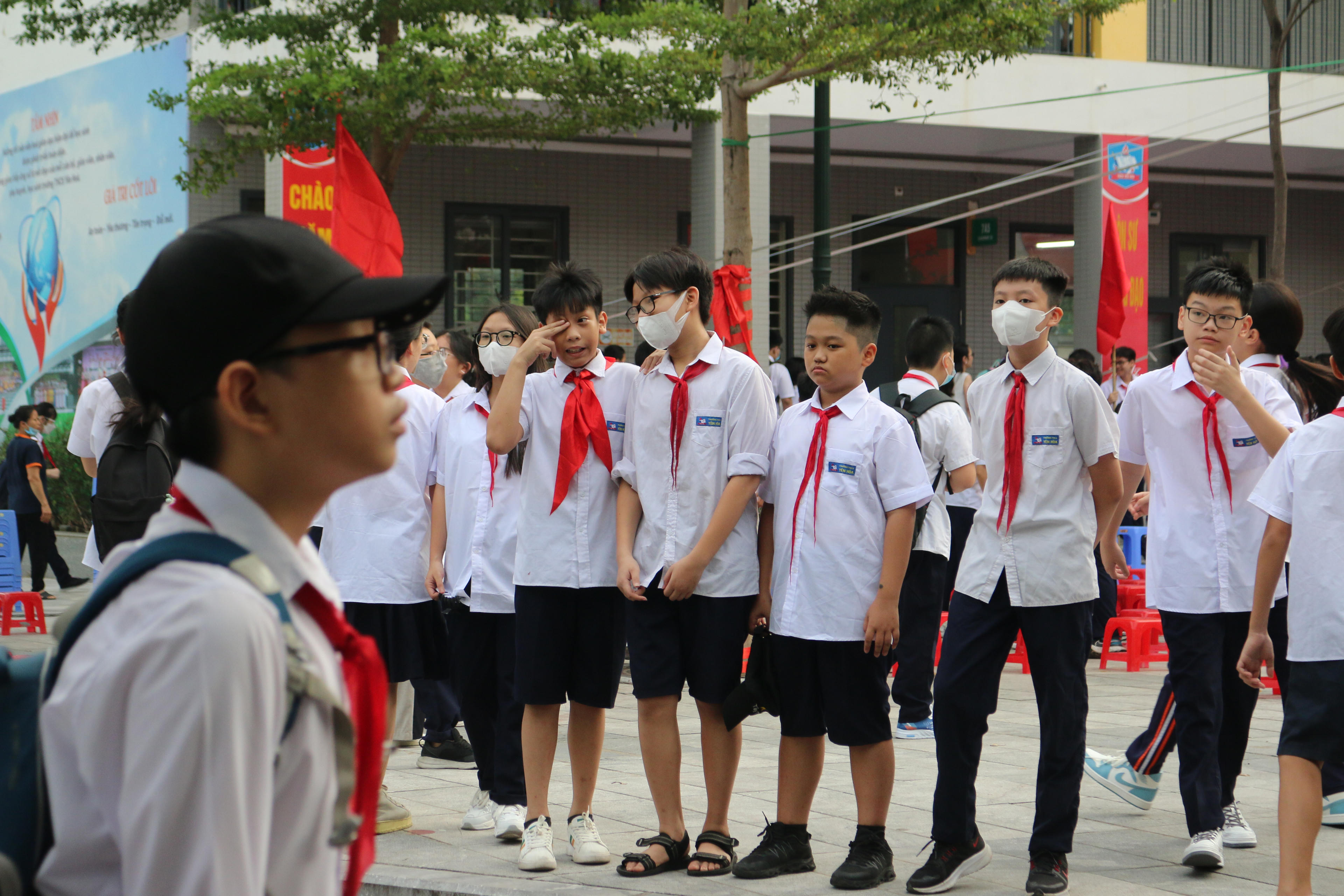 Theo ghi nhận của Báo Pháp luật Việt Nam tại một số điểm trường như THCS Yên Hòa, Tiểu học Yên Hòa, THCS&THPT Nguyễn Tất Thành (quận Cầu Giấy), THPT Mỹ Đình (quận Nam Từ Liêm), Tiểu học Kim Đồng (quận Ba Đình)..., từ sáng sớm, phụ huynh và học sinh đã có mặt để kịp tham dự lễ khai giảng năm học mới.