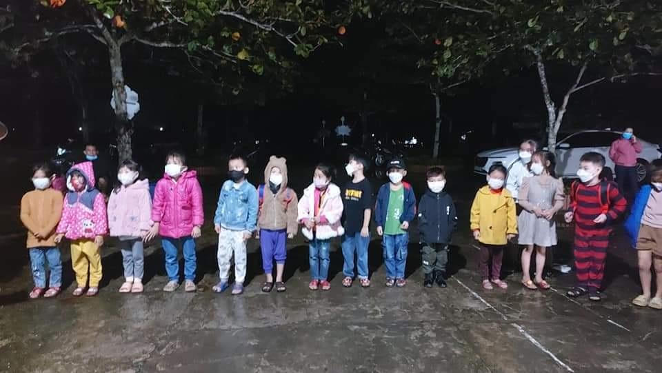 Lực lượng chức năng đưa các em đến khu cách ly tập trung |