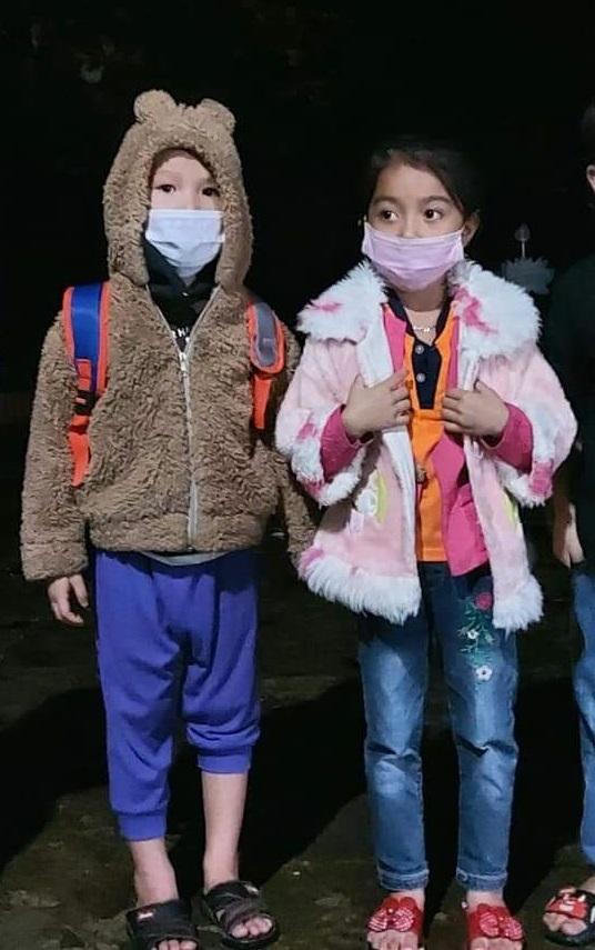 Phụ huynh nhìn các con được lực lượng chức năng đưa các cháu đến khu cách ly tập trung |