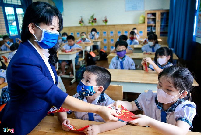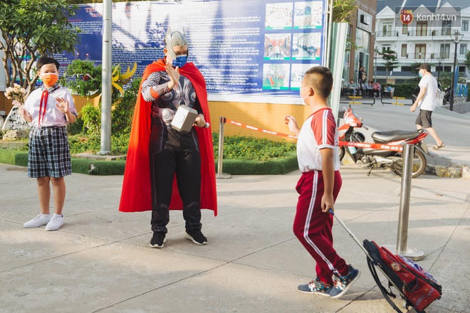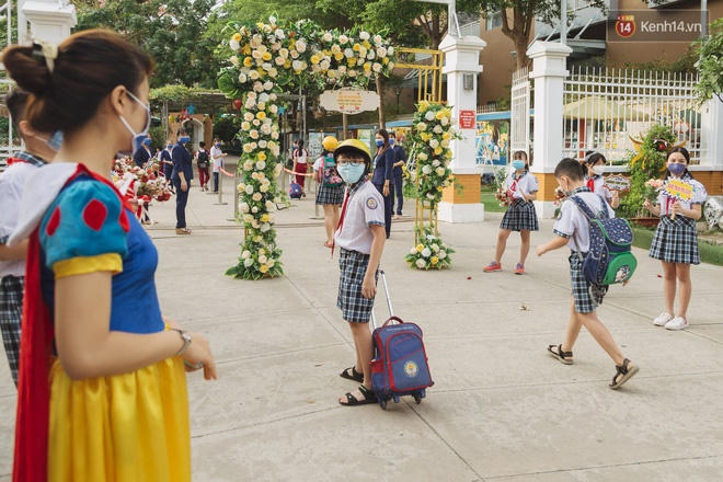 Trong khi đó, ở bậc tiểu học học sinh vui vẻ trở lại trường. Nhiều trường tổ chức cho các thầy cô hóa trang thành siêu nhân hay thuê những chú hề đón các bé để tạo sự tươi vui. Trường Tiểu học Nguyễn Thị Minh Khai (Gò Vấp, TP HCM) đón 1.700 học sinh các cấp đi học lại.