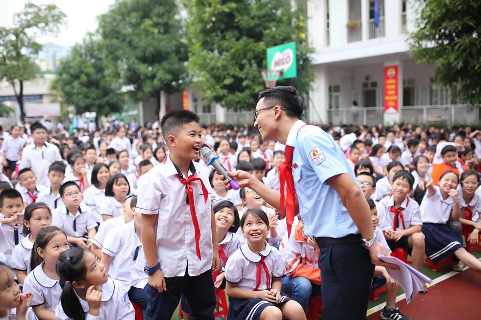 | Không chỉ có 30 thí sinh tham dự Rung chuông vàng, mà các bạn học sinh của Tiểu học Dịch Vọng B đều rất hào hứng với chương trình. |