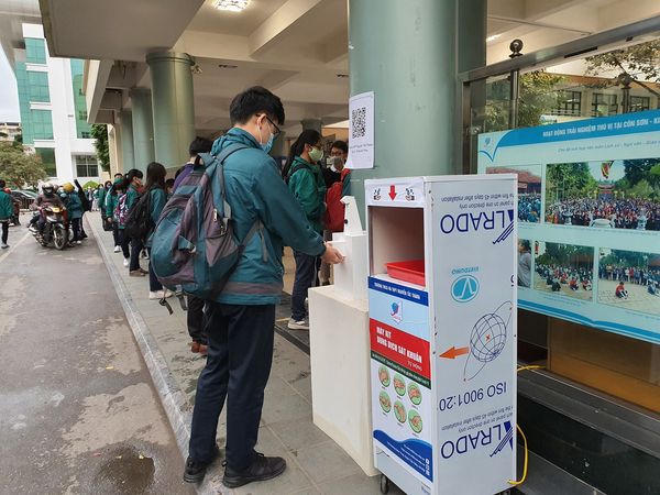 (PLVN) - Sáng hôm nay (2/3), hòa chung không khí với học sinh thủ đô, học sinh trường THCS&THPT Nguyễn Tất Thành đi học trở lại sau thời gian nghỉ chống dịch Covid-19. Cùng với cơ sở vật chất được chuẩn bị rất chu đáo để phòng bệnh dịch, trước cổng trường còn xuất hiện robot rửa tay tự động do chính học sinh của trường tự sáng tạo.