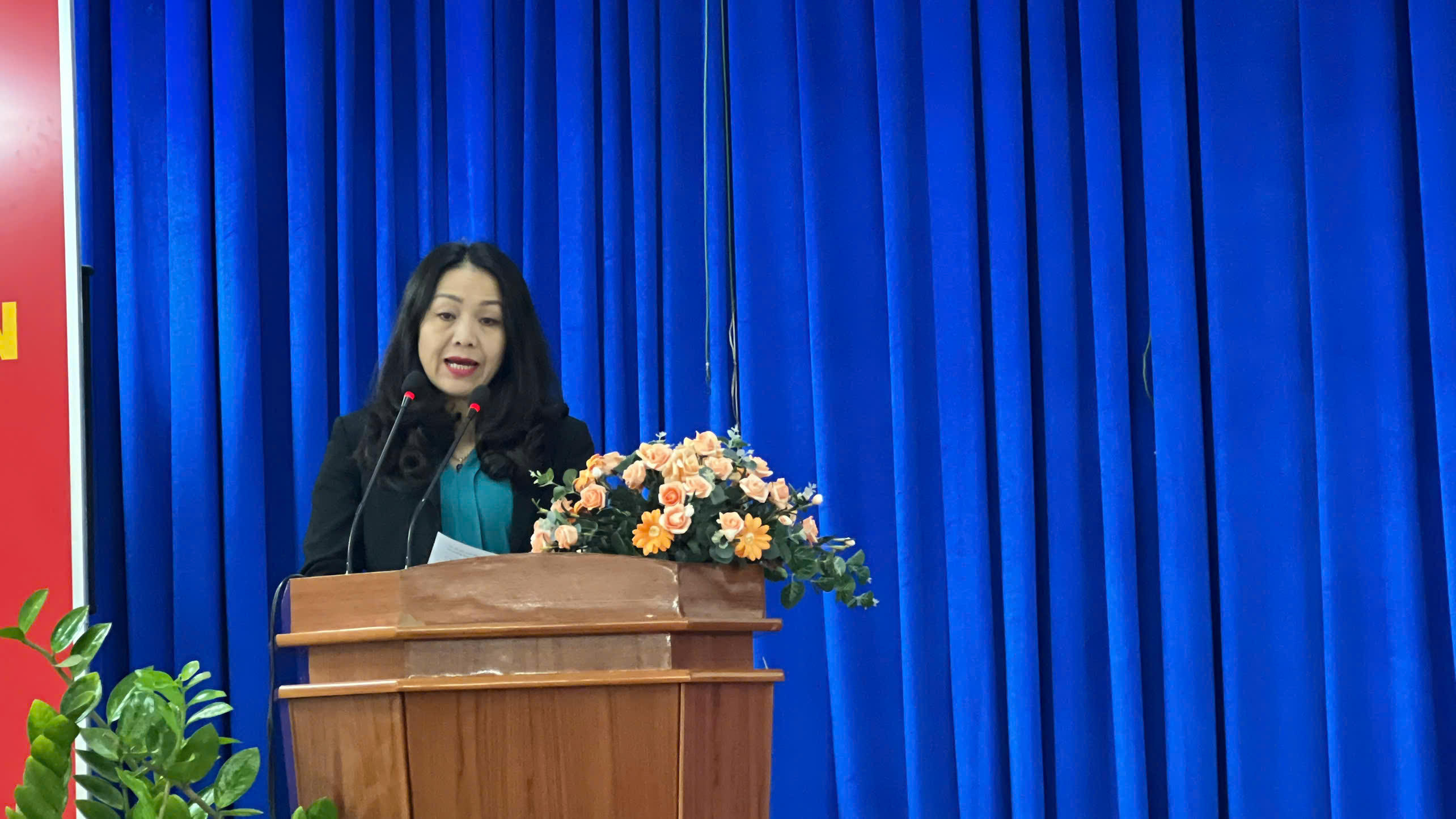 Bà Trần Trương Thị Thiên Trà- Phó Giám đốc Trung tâm Chính trị TP Đà Lạt phát biểu khai mạc lớp bồi dưỡng. |