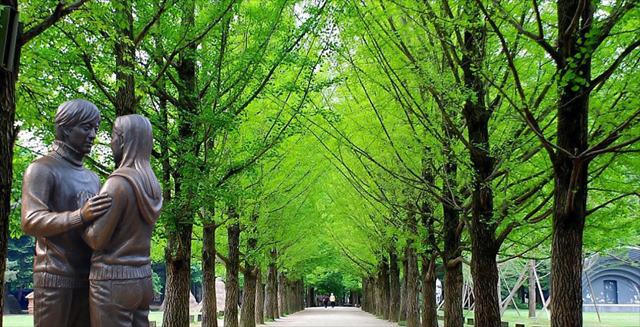 Đảo Nami nổi tiếng với những hàng cây cổ thụ chạy dài thẳng tắp; với con đường tình yêu lãng mạn đầy lá vàng rơi, thu hút hàng triệu du khách mỗi năm đến tham quan và khám phá và là điểm đến phổ biến nhất trong tour du lịch Hàn Quốc. Nơi đây ấn tượng với khách du lịch bởi bức tượng của hai nhân vật chính trong phim