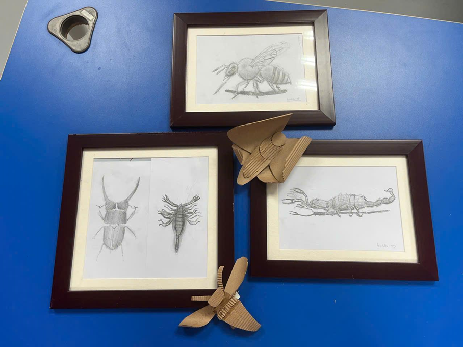 Cùng con tham gia Lễ khai giảng năm học 2024 - 2025, chị Nguyễn Việt Huệ, mẹ của em Nguyễn Duy Bách Du, học sinh lớp 5R, cơ sở TH School Chùa Bộc, đã không giấu được niềm hạnh phúc và cảm xúc khi chiêm ngưỡng tác phẩm đặc biệt ấn tượng và có giá trị nghệ thuật cao của con trai tại triển lãm Walking through art. Bách Du có tới 3 bức tranh được trưng bày tại triển lãm, bằng chất liệu chì, tả thực các loại côn trùng và động vật. Đối với em cũng như nhiều bạn học tại TH School, hội họa là môn học các em rất yêu thích vì được vẽ tranh và thể hiện đam mê của mình.