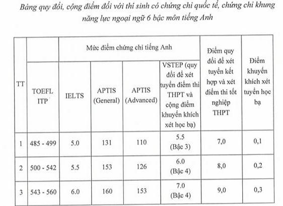 Ở phương thức xét điểm thi tốt nghiệp THPT, Học viện chấp nhận quy đổi điểm môn tiếng Anh đối với những thí sinh có chứng chỉ tiếng Anh. Điểm tiếng Anh quy đổi sẽ được kết hợp với điểm thi tốt nghiệp THPT thành tổ hợp môn xét tuyển.