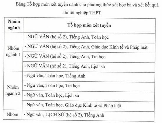 Ở phương thức xét kết hợp, sẽ xét thí sinh có chứng chỉ quốc tế môn tiếng Anh tương đương IELTS từ 6.5 trở lên, chứng chỉ SAT tối thiểu 1.200/1.600, điểm học tập các môn toán, ngữ văn, lịch sử của 6 học kỳ bậc THPT từ 7,0 trở lên, hạnh kiểm xếp loại tốt.