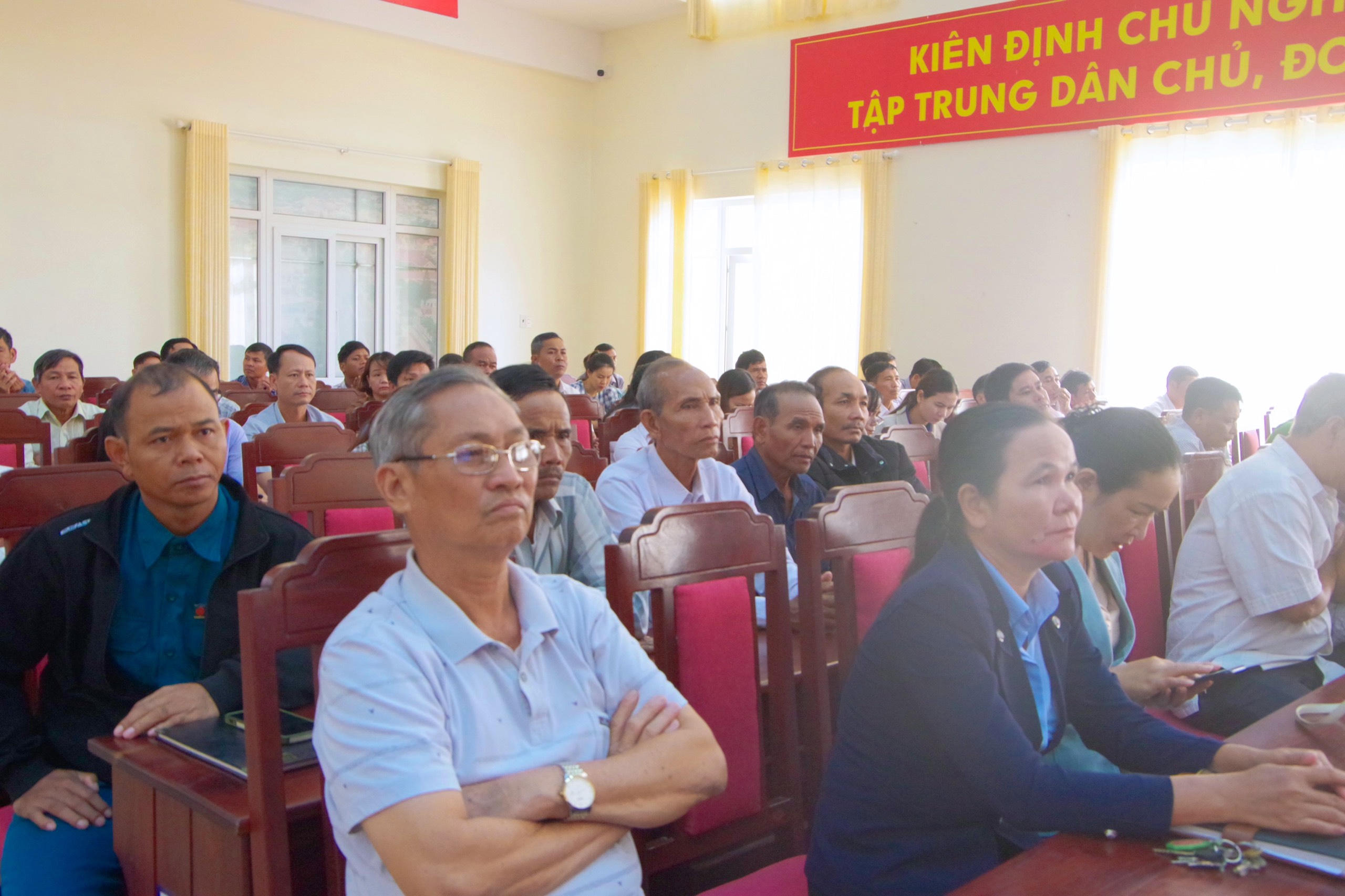 Các già làng, người uy tín tại huyện Lắk tham dự, theo dõi buổi thông tin. |
