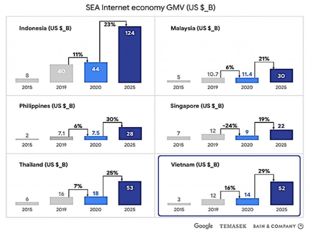 Nền kinh tế số Việt Nam được dự báo sẽ đạt 52 tỉ USD vào năm 2025, với tốc độ tăng trưởng hàng đầu khu vực Đông Nam Á |