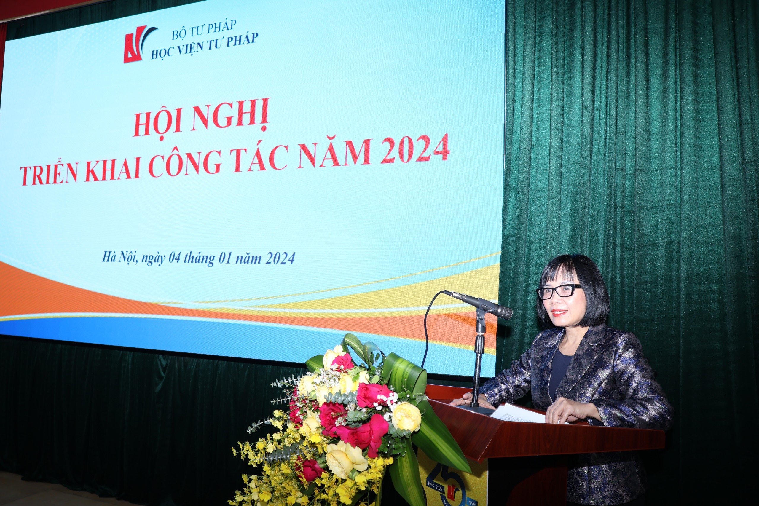 Thứ trưởng Đặng Hoàng Oanh nêu rõ, năm 2024 là năm tăng tốc để hoàn thành Kế hoạch phát triển kinh tế - xã hội 5 năm 2021 - 2025. Tình hình thế giới và trong nước dự báo tiếp tục diễn biến nhanh, phức tạp, khó lường cả về chính trị, an ninh, kinh tế, xã hội. Trong bối cảnh đó, để hoàn thành tốt nhiệm vụ chính trị năm 2024, Thứ trưởng Đặng Hoàng Oanh yêu cầu Học viện Tư pháp phải bám sát Chương trình hành động của ngành Tư pháp thực hiện các Nghị quyết của Chính phủ về nhiệm vụ, giải pháp chủ yếu thực hiện Kế hoạch phát triển kinh tế, xã hội và Dự toán ngân sách nhà nước năm 2024.