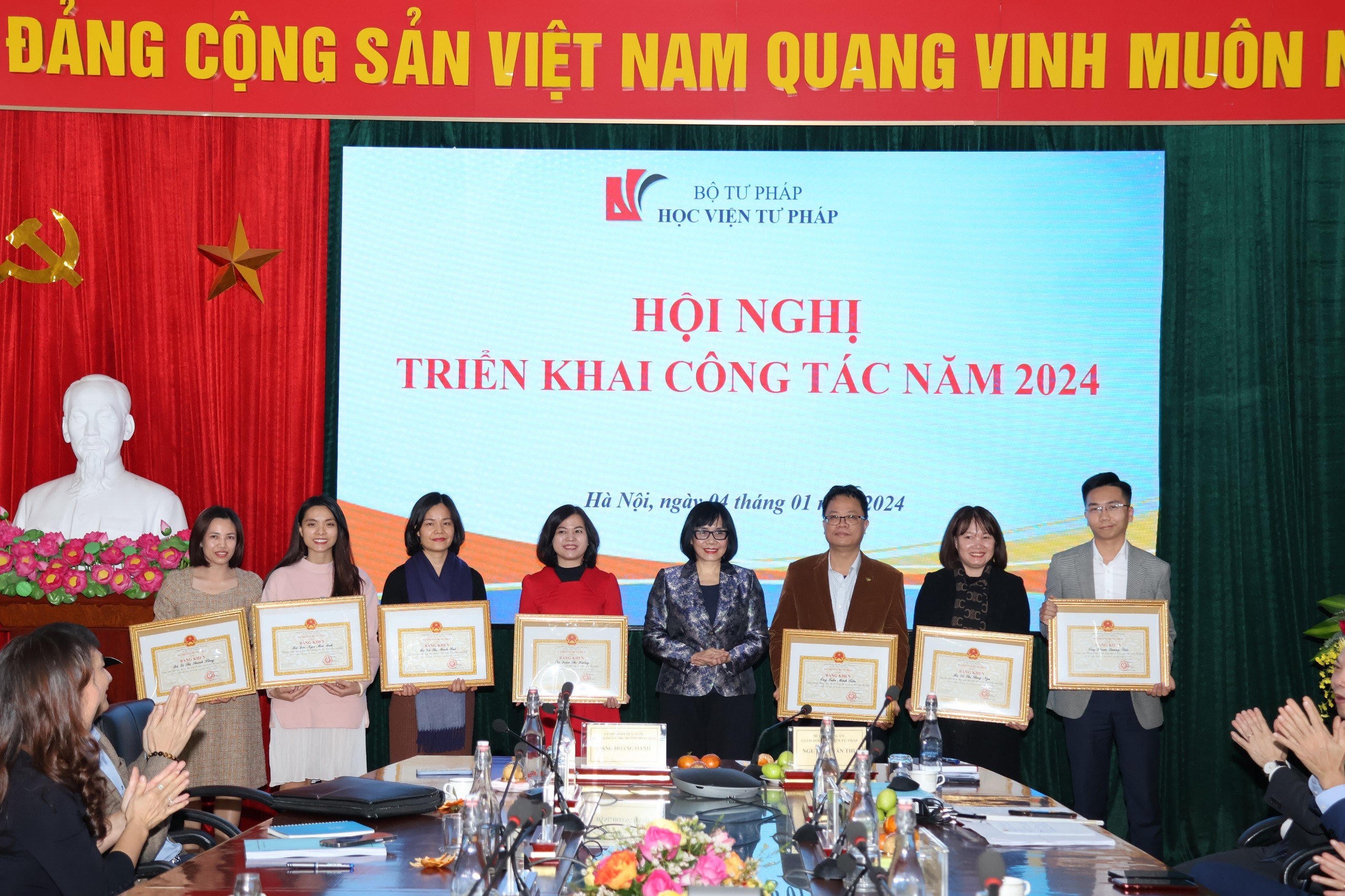 Đồng thời, thực hiện tốt công tác tuyển sinh, đào tạo năm 2024 đảm bảo chỉ tiêu, tiến độ theo kế hoạch được Lãnh đạo Bộ Tư pháp phê duyệt. Tổ chức có hiệu quả, chất lượng các lớp bồi dưỡng cho công chức, viên chức, người lao động thuộc thẩm quyền quản lý của Bộ Tư pháp và theo nhu cầu xã hội. Chú trọng nâng cao chất lượng và quy mô đào tạo, tập trung đào tạo nhân lực pháp luật chất lượng cao cho các vùng và cả nước, tạo chuyển biến về chất lượng trong giáo dục, đào tạo. Thực hiện tốt các nhiệm vụ nghiên cứu khoa học, rà soát, xây dựng, chỉnh sửa các chương trình, giáo trình, tài liệu đào tạo, bồi dưỡng, biên tập hồ sơ tình huống…