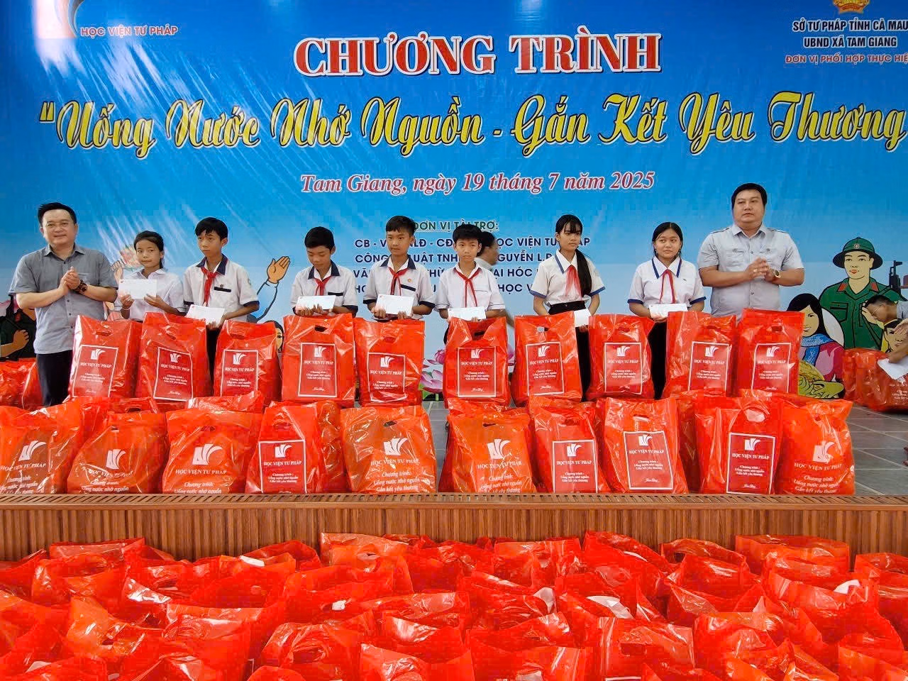 (PLVN) - Nhằm hướng tới kỷ niệm 78 năm ngày Thương binh - Liệt sĩ (27/7/1947- 27/7/2025) và kỷ niệm 80 năm Ngày truyền thống ngành Tư pháp Việt Nam (28/8/1945 – 28/8/2025). Công đoàn, Đoàn Thanh niên Cơ sở tại Thành phố Hồ Chí Minh của Học viện Tư pháp đã tổ chức dâng hương tại Khu tưởng niệm Chủ tịch Hồ Chí Minh (phường An Xuyên, tỉnh Cà Mau) đồng thời có chuyến thăm, trao tặng những phần quà ý nghĩa đến các gia đình Thương binh - Liệt sĩ, gia đình chính sách và các em học sinh có hoàn cảnh khó khăn vượt khó đã có thành tích tốt trong học tập địa bàn xã Tam Giang tỉnh Cà Mau.
