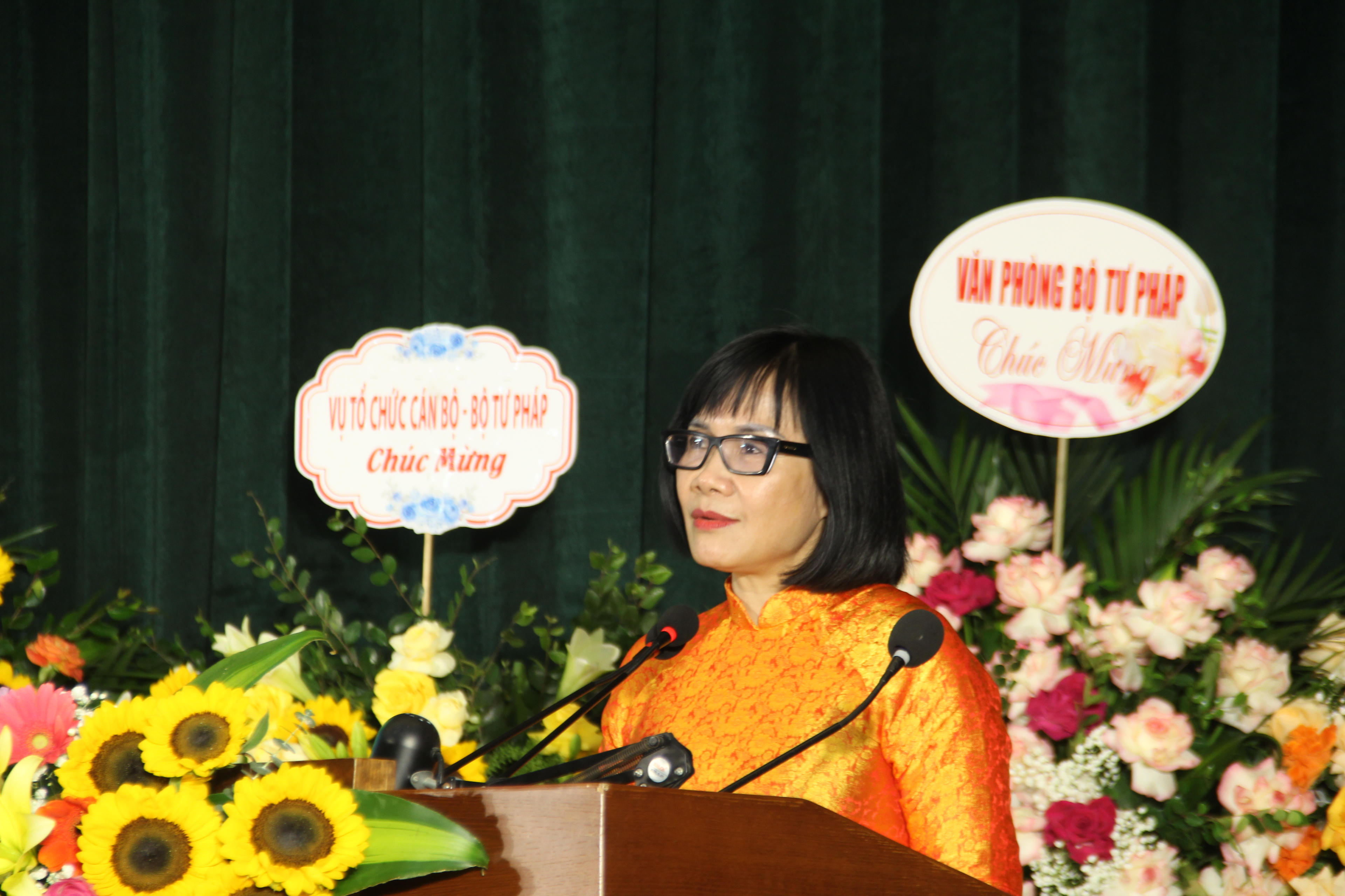 Phát biểu tại buổi lễ, Thứ trưởng Đặng Hoàng Oanh biểu dương và đánh giá cao những kết quả công tác mà Học viện đã đạt được trong thời gian qua. Trước yêu cầu ngày càng cao đối với chất lượng đào tạo nguồn nhân lực nói chung và nguồn nhân lực pháp luật nói riêng, nhất là trong bối cảnh hội nhập quốc tế mạnh mẽ và sự phát triển của cách mạng 4.0, Thứ trưởng đề nghị Học viện tiếp tục phát huy sức mạnh đoàn kết, thống nhất, tiếp tục chung tay đẩy mạnh triển khai các nhiệm vụ, giải pháp trọng tâm, có tính đột phá của Đề án và Kế hoạch thực hiện “Đề án tiếp tục xây dựng Học viện Tư pháp thành trung tâm lớn đào tạo các chức danh tư pháp” theo Quyết định số 1155/QĐ-TTg ngày 30/9/2022 của Thủ tướng Chính phủ.