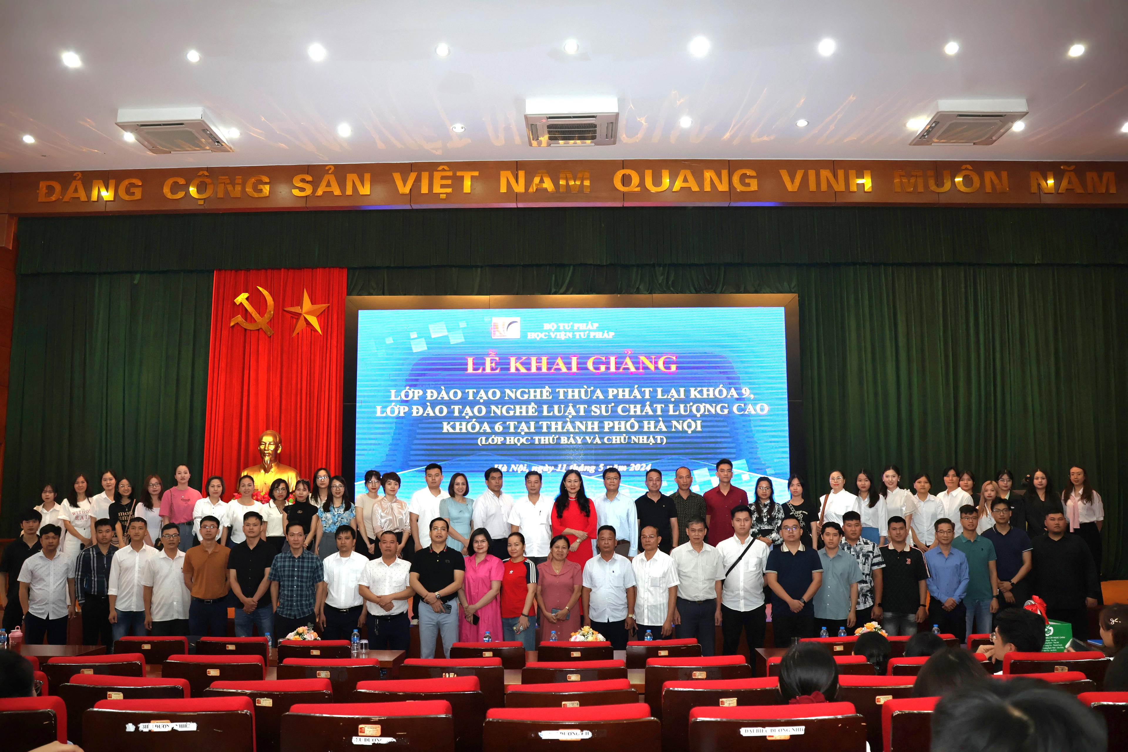 (PLVN) - Sáng 11/5/2024, Học viện Tư pháp trang trọng tổ chức Lễ khai giảng Lớp đào tạo nghề luật sư theo chương trình chất lượng cao khóa 6 và Lớp đào tạo nghề thừa phát lại khóa 9 học thứ 7, chủ nhật tại Hà Nội.