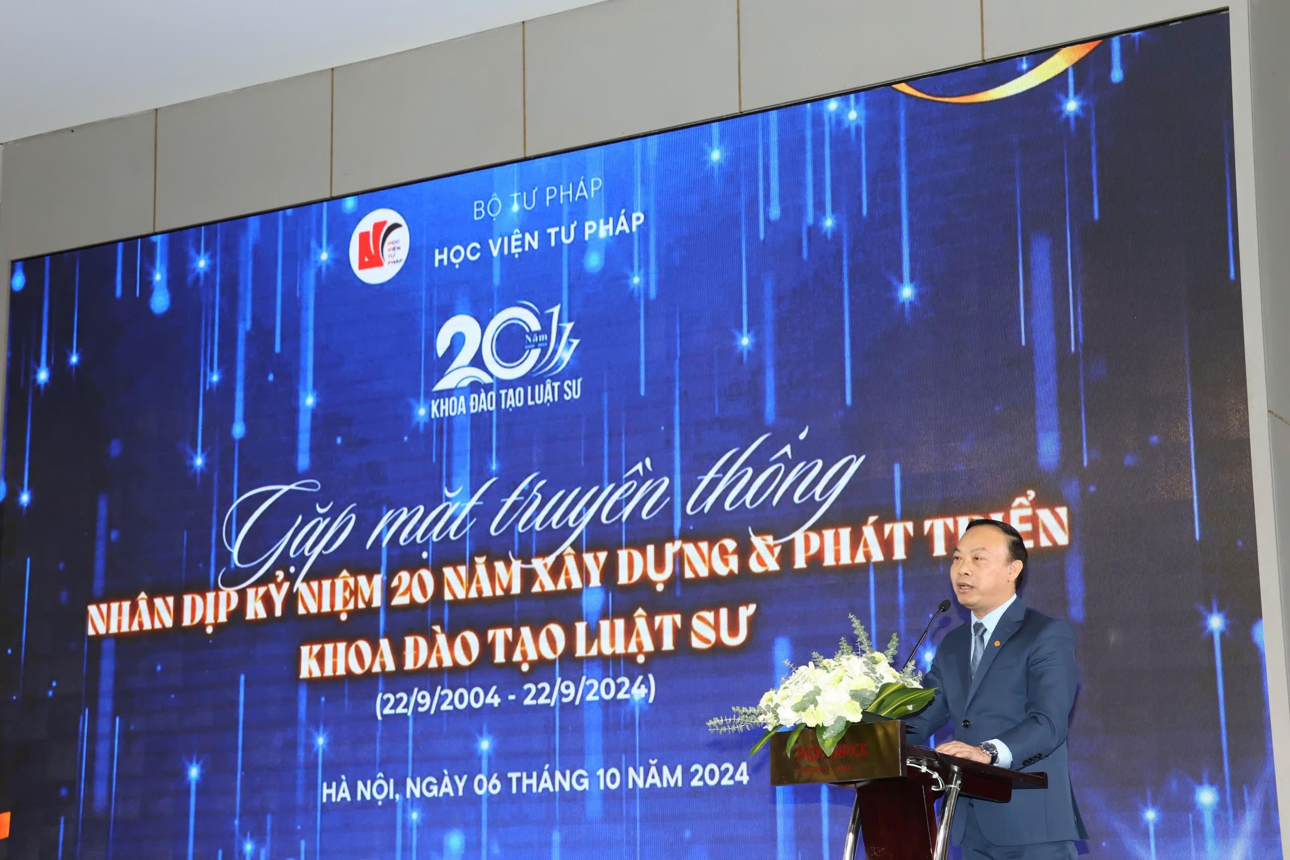 Phát biểu chào mừng kỷ niệm 20 năm thành lập Khoa Đào tạo Luật sư, TS. Nguyễn Xuân Thu, Giám đốc Học viện Tư pháp khẳng định, 20 năm không phải là một quãng thời gian quá dài, nhưng đây là một bước tiến dài của Khoa Đào tạo Luật sư. Giám đốc Học viện Tư pháp Nguyễn Xuân Thu chúc mừng và ghi nhận những nỗ lực, quyết tâm của đội ngũ cán bộ, giảng viên, người lao động của Khoa Đào tạo Luật sư trong suốt chặng đường 20 năm qua, góp phần quan trọng vào sự nghiệp phát triển nguồn nhân lực pháp luật, tư pháp, xây dựng Nhà nước pháp quyền xã hội chủ nghĩa Việt Nam, hội nhập quốc tế và sự nghiệp phát triển giáo dục đào tạo nước nhà.