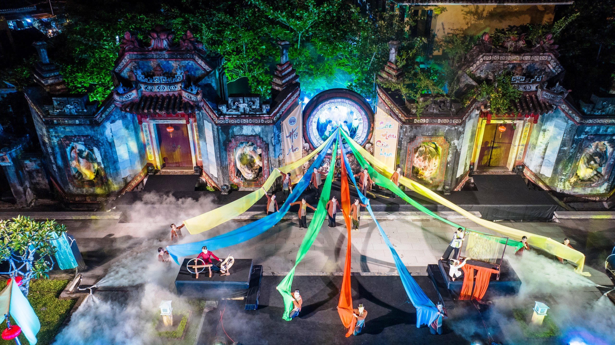 Tiết mục tái hiện nét đẹp lao động ở làng lụa 300 năm tuổi ở Hội An. |