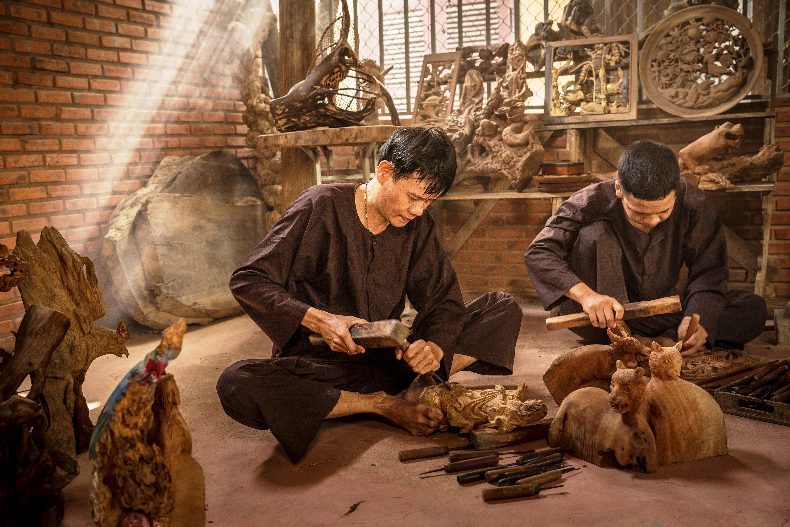 Nghệ nhân làng mộc Kim Bồng tỉ mỉ, tạo ra những bức tượng xuất sắc. |