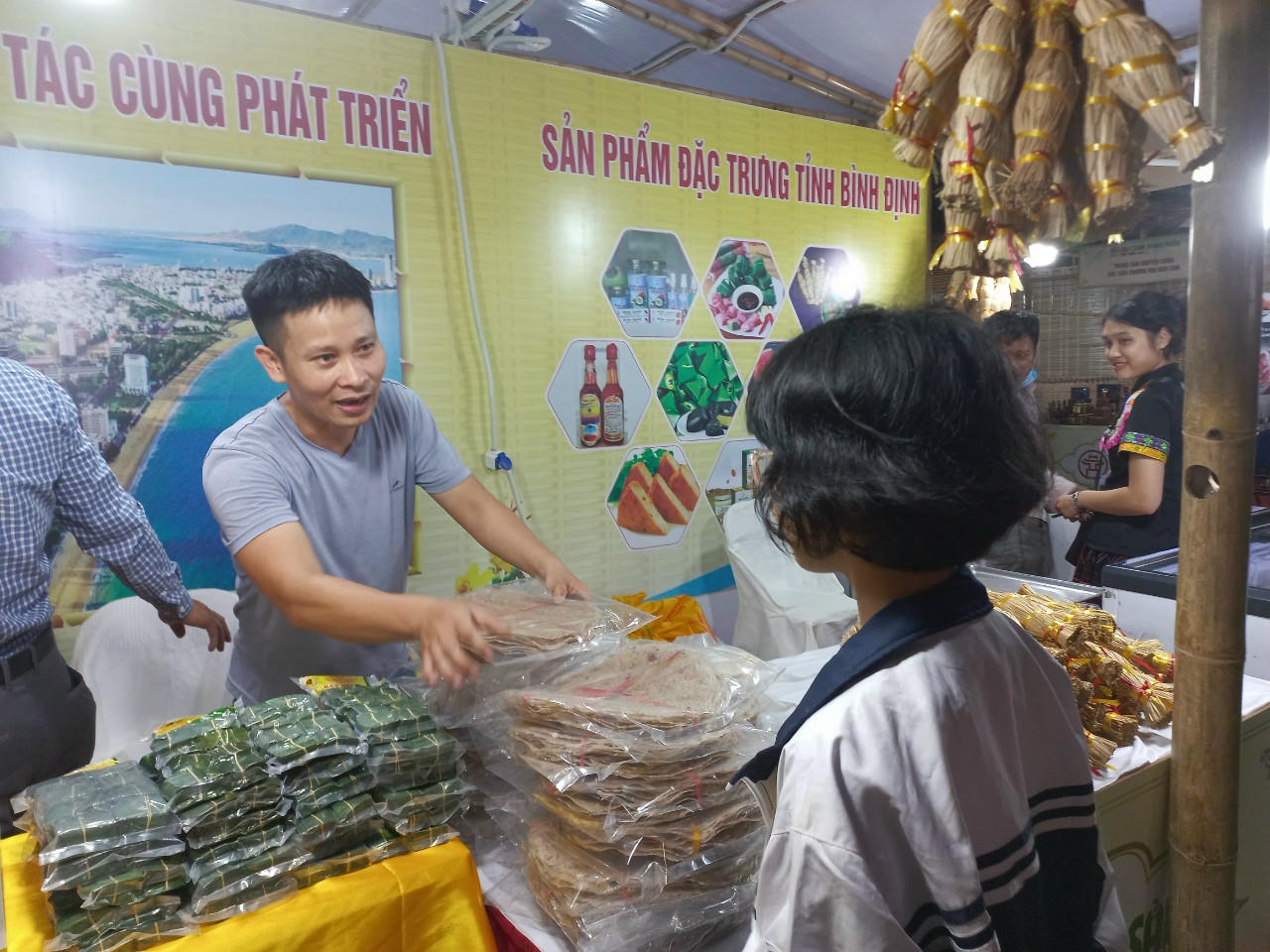 Khách mời thưởng thức đặc sản địa phương ngay tại Hội chợ |