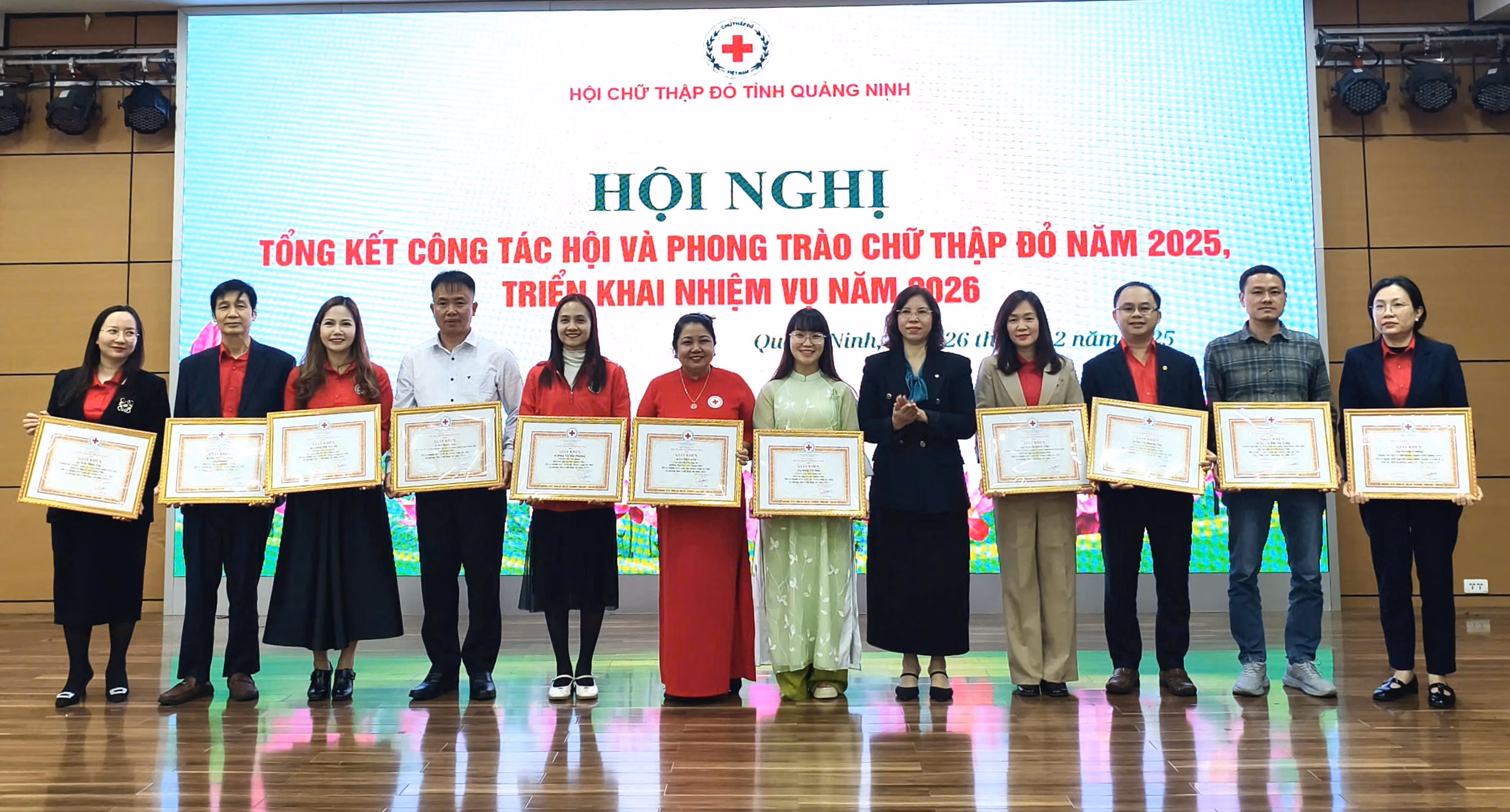 Nhân dịp này, Hội Chữ thập đỏ tỉnh Quảng Ninh đã khen thưởng, biểu dương các tập thể, cá nhân có thành tích xuất sắc trong công tác Hội và phong trào Chữ thập đỏ năm 2025, đồng thời khen thưởng, ghi nhận, tri ân các tập thể, cá nhân có nhiều đóng góp trong công tác vận động, ủng hộ đồng bào bị thiệt hại do bão lũ năm 2025 theo lời kêu gọi của Hội Chữ thập đỏ tỉnh.