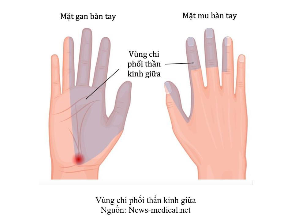 – Rối loạn cảm giác: Bệnh nhân thường thấy tê bì, ngứa ran bàn tay, đau buốt như bị kim châm hay bỏng rát ở vùng da thuộc chi phối của dây thần kinh giữa: ngón cái, ngón trỏ, ngón giữa và ngón áp út. Các biểu hiện thường nặng lên vào ban đêm khiến người bệnh khó ngủ, mất ngủ. Hay như khi gấp, ngửa, tỳ cổ tay khi đi xe máy hoặc đánh máy cũng làm cảm giác tê, đau tăng lên. Triệu chứng sẽ giảm đi khi được nghỉ ngơi hay xoa bóp.