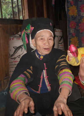 Theo lời chỉ dẫn, cuối cùng chúng tôi cũng tìm đến gia đình anh công an viên Lang Văn Thọ. Bước lên nhà sàn là không gian thoáng đãng, bên bếp than hồng, người già cùng trẻ nhỏ đang cười nói vui vẻ với nhau. Hai bà cụ có hàm răng đen đang dõi ánh mắt nhìn về phía chúng tôi.