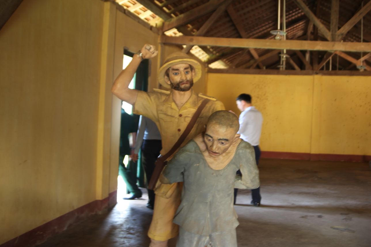 Mô phỏng lính Pháp tra tấn tù nhân bằng dùi sắt tại Nhà đày Buôn Ma Thuột |