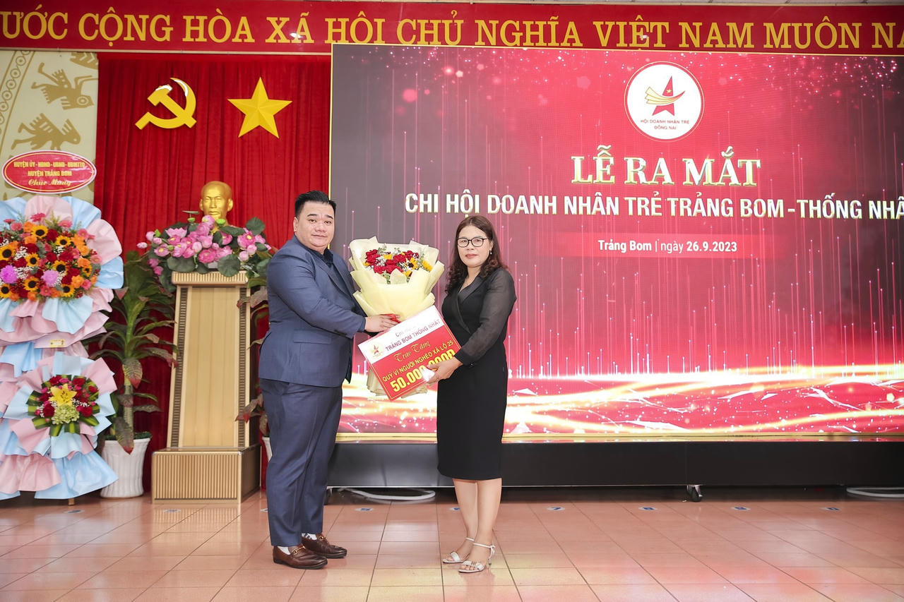 Dịp này, Lãnh đạo Chi hội Doanh nhân trẻ Trảng Bom-Thống Nhất đã trao tổng số tiền 120 triệu đồng cho Quỹ Vì người nghèo Trảng Bom, xã Lộ 25 (huyện Thống Nhất) và học sinh nghèo huyện Trảng Bom.
