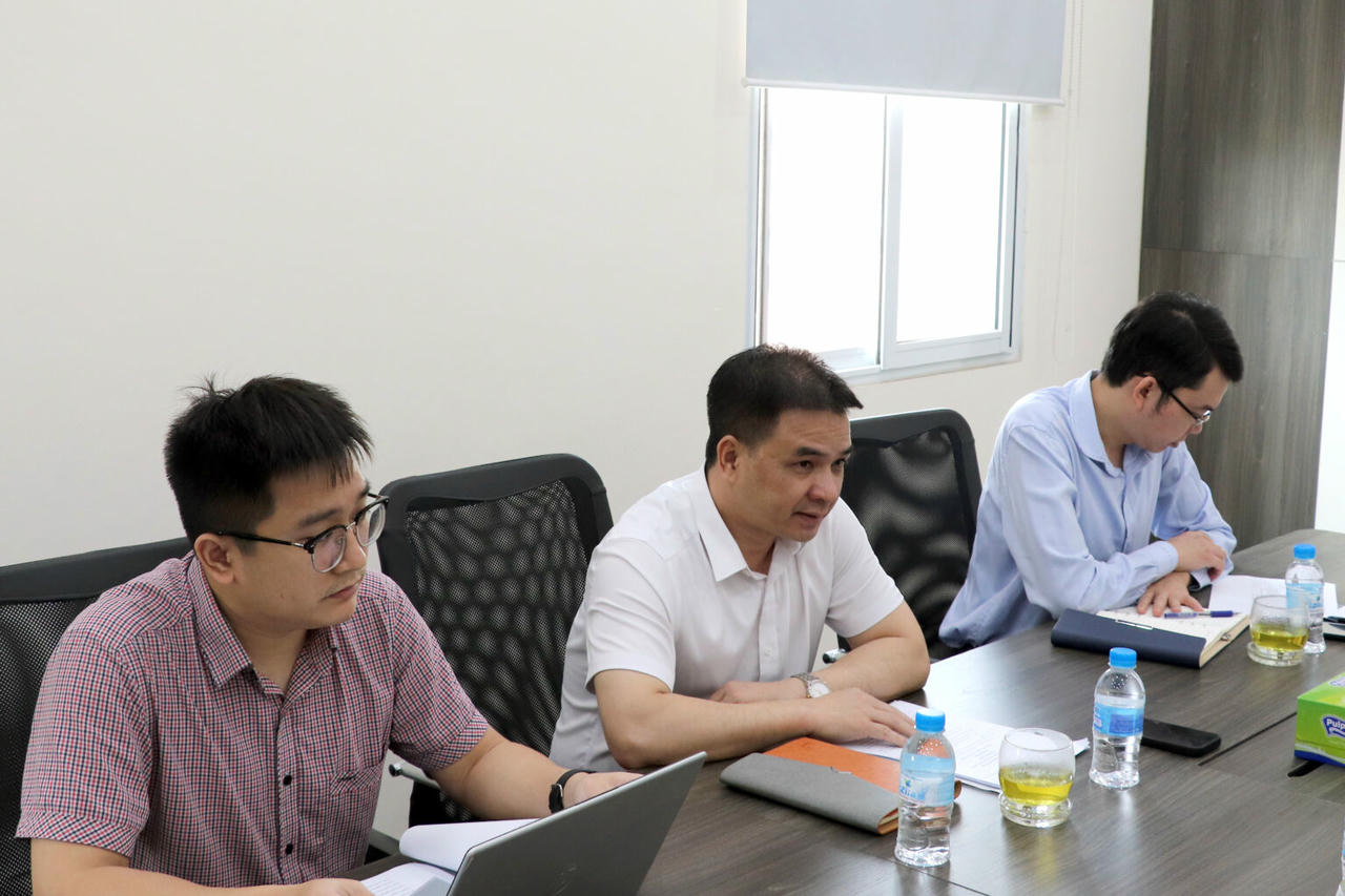 Anh Nguyễn Doãn Thắng (giữa) trao đổi tại buổi làm việc. |