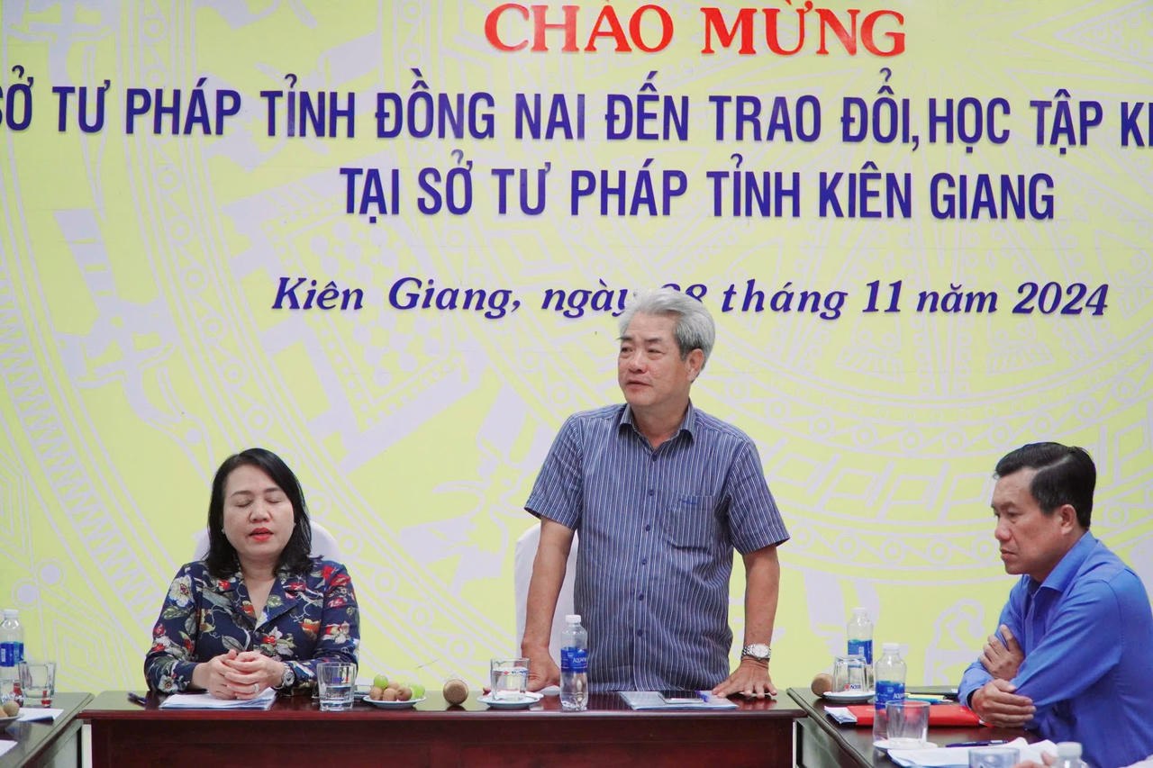 (PLVN) - Chiều ngày 28/11/2024, Đoàn học tập kinh nghiệm Hội đồng phối hợp phổ biến, giáo dục pháp luật tỉnh Đồng Nai đã đến thăm và học tập kinh nghiệm tại tỉnh Kiên Giang.