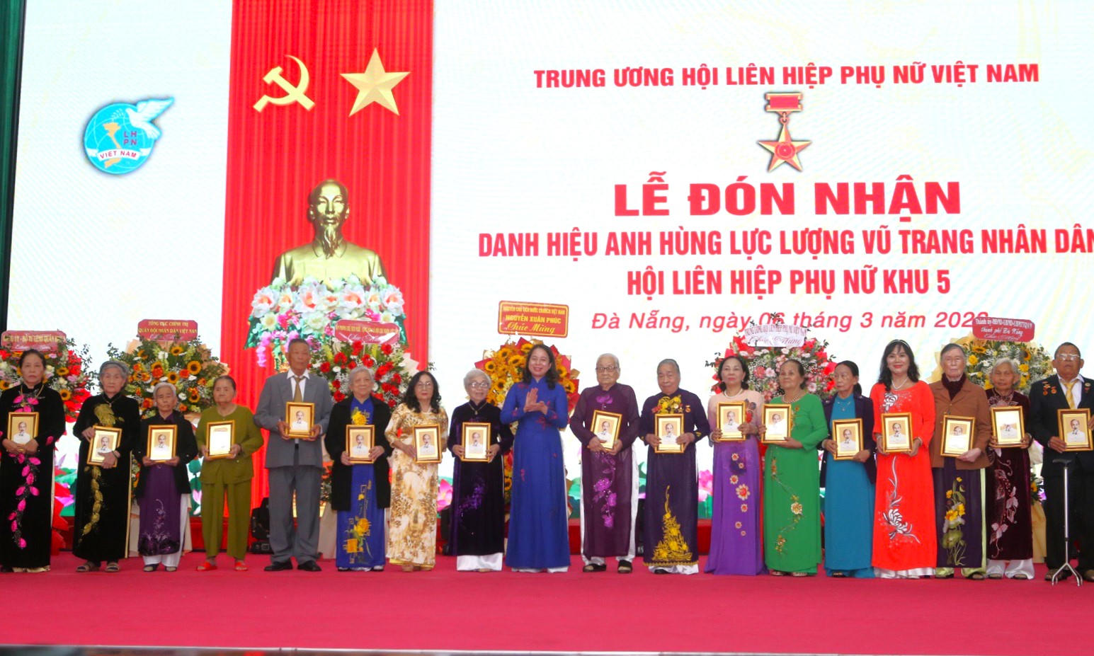 (PLVN) - Ngày 6/3, tại TP Đà Nẵng, Hội Liên hiệp Phụ nữ Việt Nam phối hợp với Thành ủy Đà Nẵng, Bộ Tư Lệnh Quân Khu 5 tổ chức Lễ đón nhận danh hiệu Anh hùng Lực lượng vũ trang nhân dân cho Hội Liên hiệp Phụ nữ Khu 5.