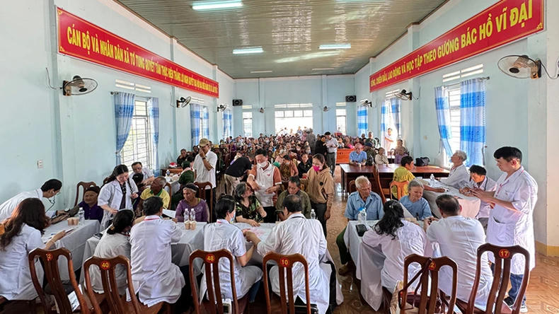 Hoạt động khám chữa bệnh và tư vấn sức khỏe miễn phí cho bà con xã Tơ Tung, huyện Kbang ngày 30/3. Ảnh: Hữu Phúc |