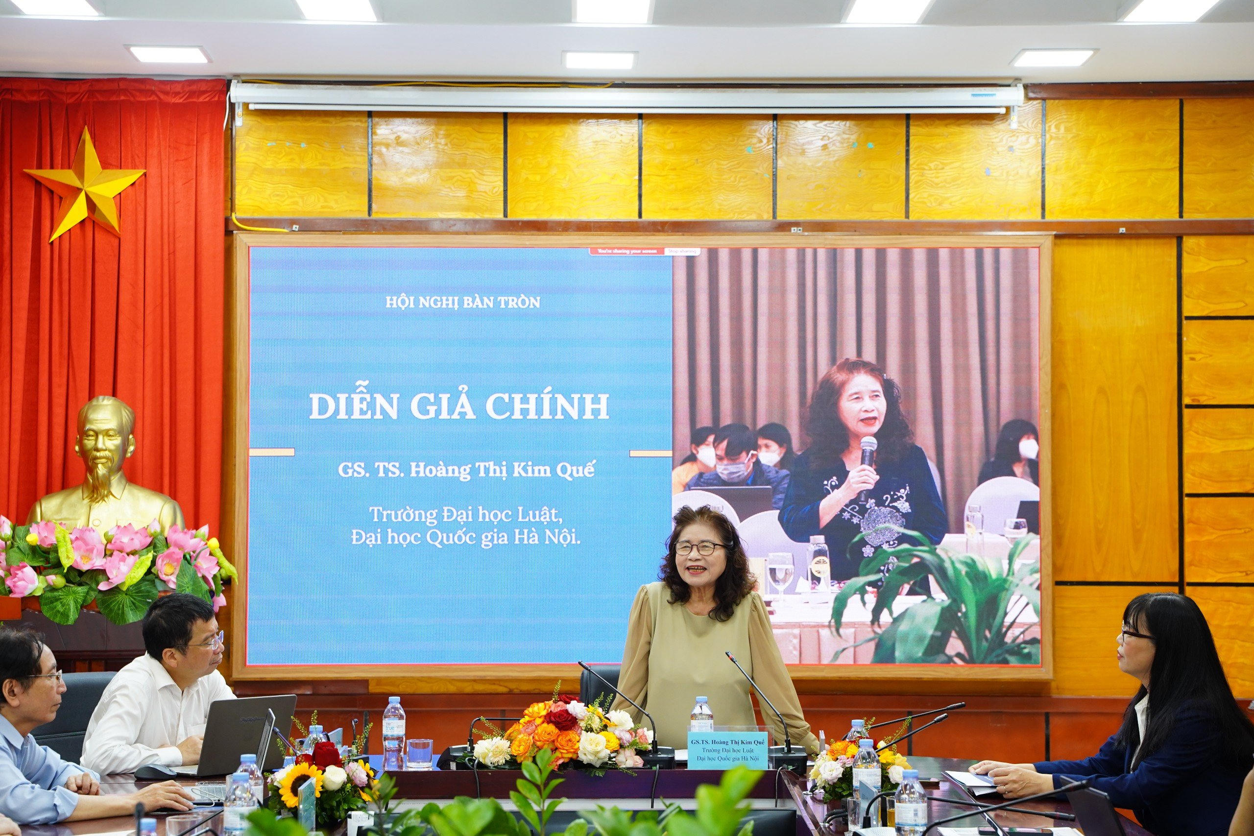 GS.TS Hoàng Thị Kim Quế, Trường Đại học Luật - Đại học Quốc gia Hà Nội trình bày chuyên đề tại hội nghị. |